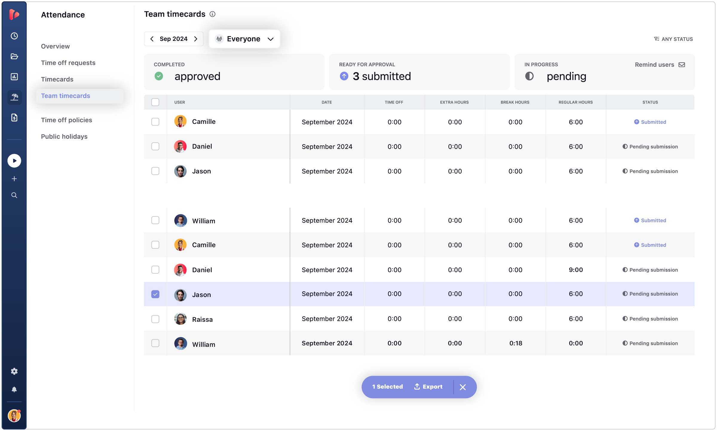 El software de asistencia de TrackingTime está diseñado para optimizar cómo gestionas la asistencia de tu equipo. Con un rastreador intuitivo, podrás supervisar la asistencia de tus empleados, gestionar solicitudes de tiempo libre y automatizar horarios, todo desde una única plataforma.